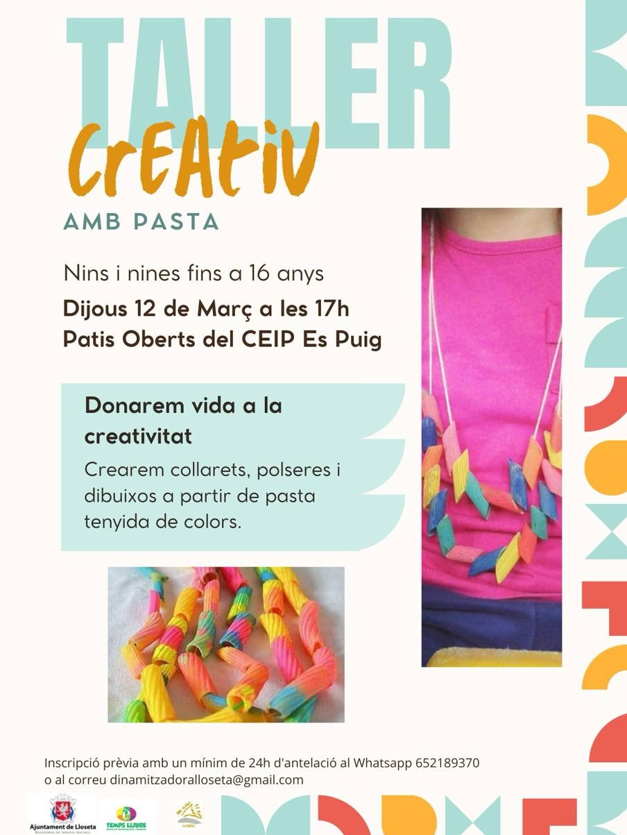 En aquest taller donarem color a la imaginació creant collarets, polseres, dibuixos i altres manualitats amb pasta de colors.