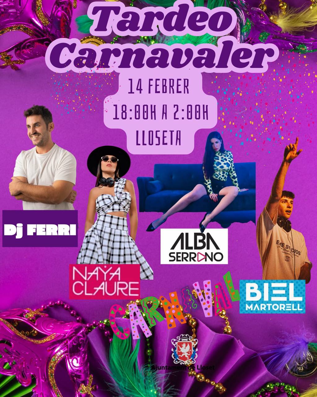 Prepara't pel millor Tardeo carnavaler el pròxim 14 de febrer, de 18.00 a 2.00h a la plaça Espanya, amb: