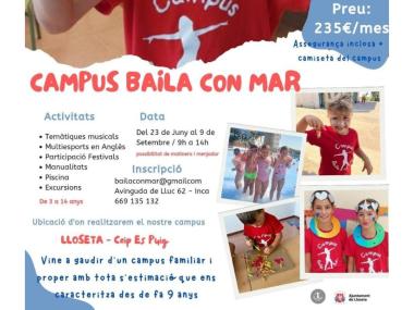 Aquest estiu torna el Campus Baila con Mar a Lloseta, al CEIP Es Puig, per a infants de 3 a 14 anys.