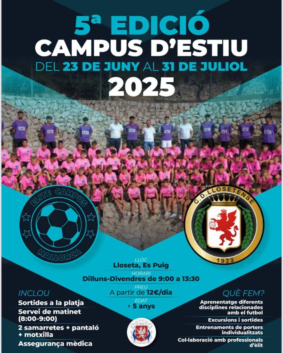 Del 23 de juny al 31 de juliol, el CEIP Es Puig acollirà la 5a edició del Campus d’Estiu amb activitats esportives per a infants a partir de 5 anys.