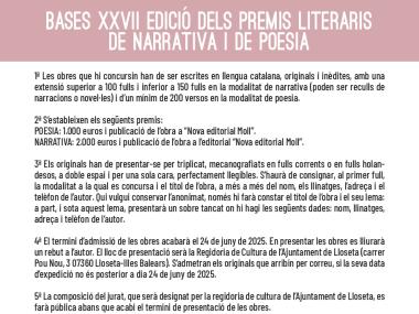 L’Ajuntament de Lloseta convoca la XXVII edició dels Premis Literaris Vila de Lloseta de narrativa i poesia