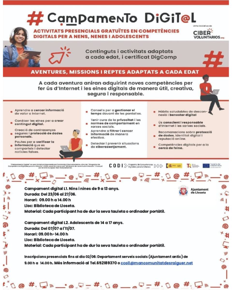Més informació al tel 652189370 o al mail ccoll@mancomunitatdesraiguer.net